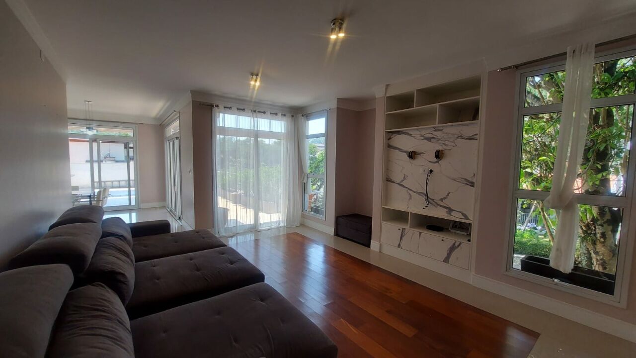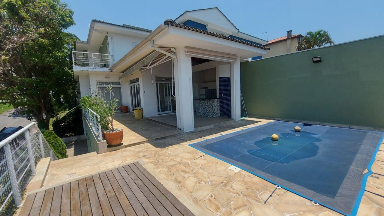 Linda casa no condomínio Aruã com 5 dormitórios (uma suíte master com closet), 2 banheiros sociais, sala ampla de tv, sala de jantar, lavabo, cozinha com ilha, lavanderia, banheiro de empregada, despensa, escritório, área gourmet coberta com churrasqueira, piscina, depósito e garagem para até 4 veículos.