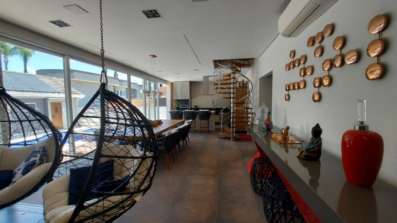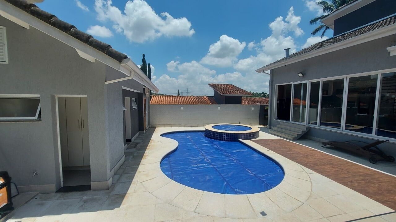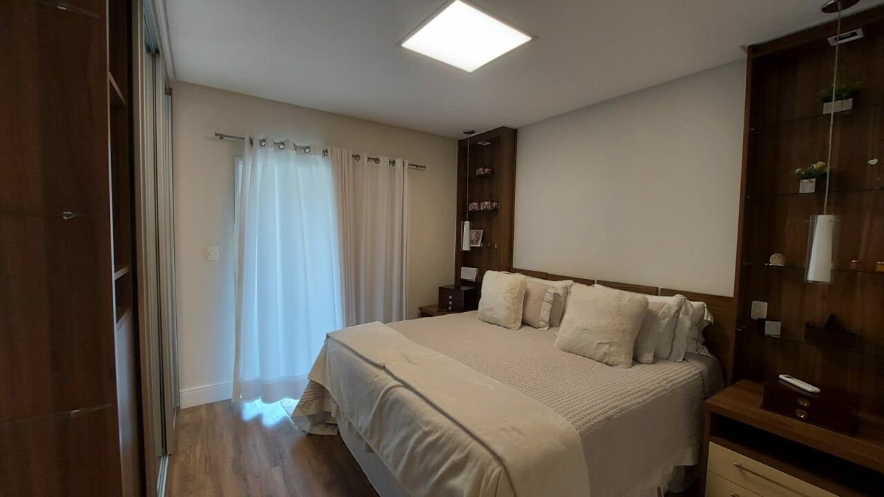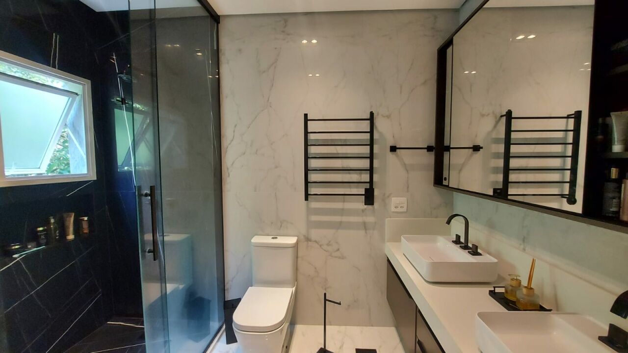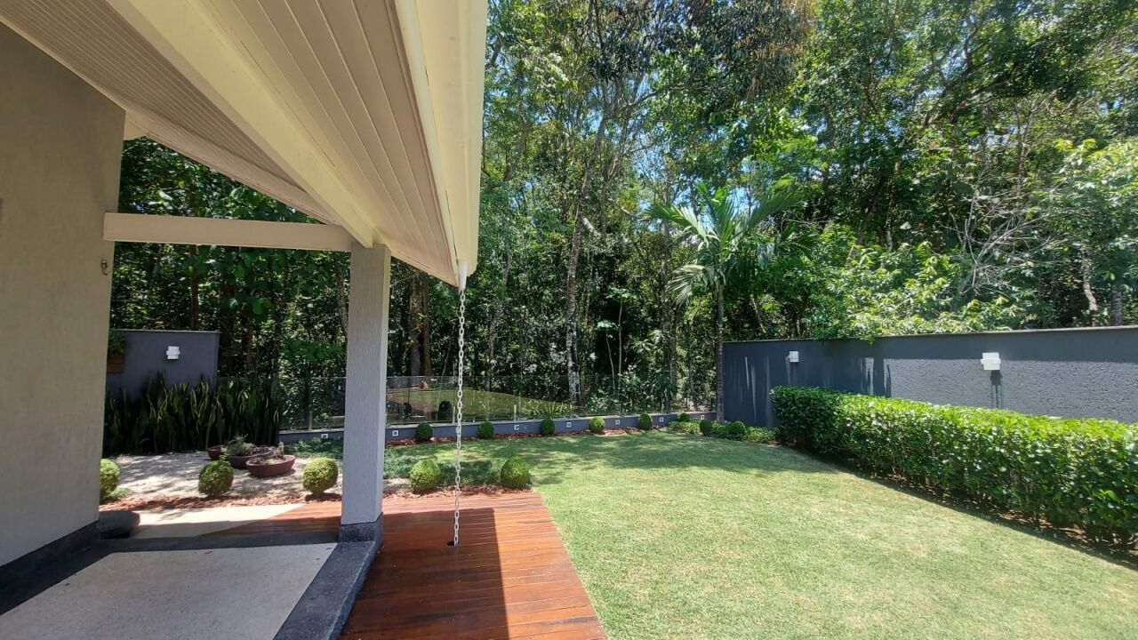 Linda mansão com 452m2 de AC em um terreno de 868,40m2 unificados, com lateral para reserva. São 2 halls de entrada, escritório, 5 dormitórios sendo 3 suítes (duas com closet), sala 3 ambientes sendo eles de estar com lareira, sala de TV com pé direito duplo e sala de jantar, lavabo, escritório, cozinha aberta com lavanderia anexa, área gourmet ampla com churrasqueira, edícula completa com quarto, banheiro, sala, cozinha e lavanderia, sótão e salão de jogos. Piscina climatizada com aquecimento solar e SPA aquecido por trocador de calor até 40 graus, sauna seca, banheiro externo e deck com jardim e vista para a reserva. Possui ar condicionado em todos os ambientes, energia fotovoltaica, depósito e vaga coberta para até 3 veículos.