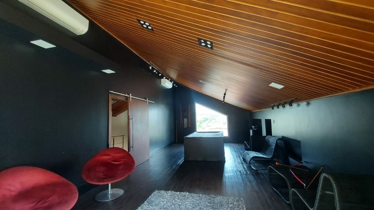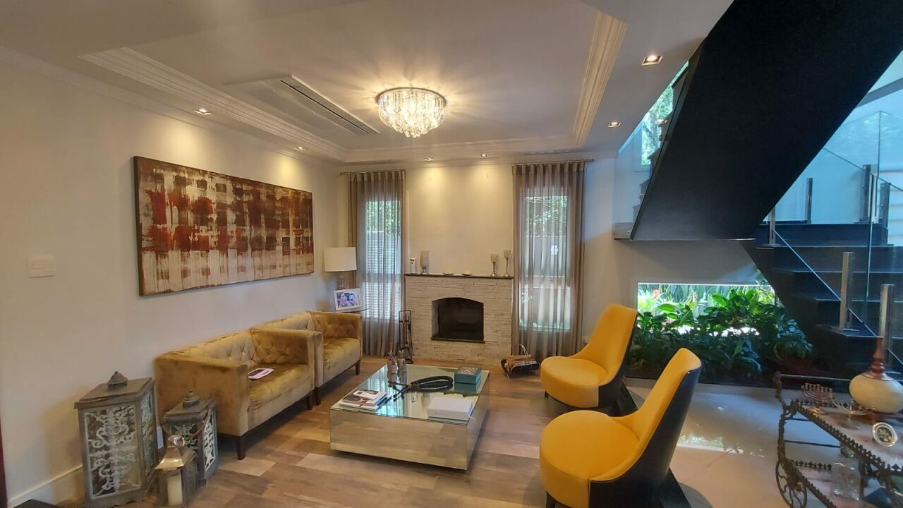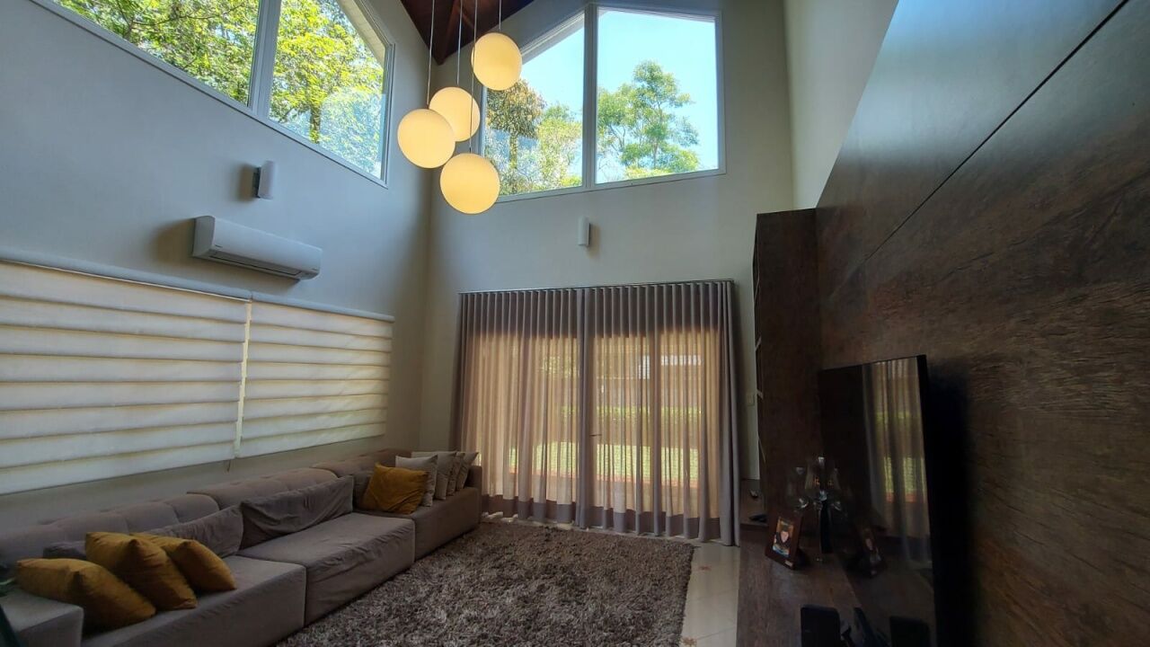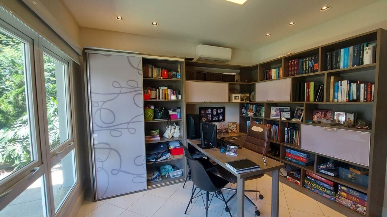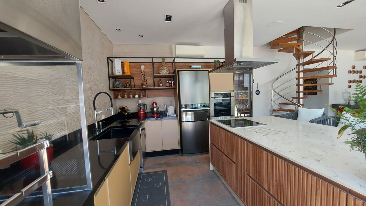 Linda mansão com 452m2 de AC em um terreno de 868,40m2 unificados, com lateral para reserva. São 2 halls de entrada, escritório, 5 dormitórios sendo 3 suítes (duas com closet), sala 3 ambientes sendo eles de estar com lareira, sala de TV com pé direito duplo e sala de jantar, lavabo, escritório, cozinha aberta com lavanderia anexa, área gourmet ampla com churrasqueira, edícula completa com quarto, banheiro, sala, cozinha e lavanderia, sótão e salão de jogos. Piscina climatizada com aquecimento solar e SPA aquecido por trocador de calor até 40 graus, sauna seca, banheiro externo e deck com jardim e vista para a reserva. Possui ar condicionado em todos os ambientes, energia fotovoltaica, depósito e vaga coberta para até 3 veículos.