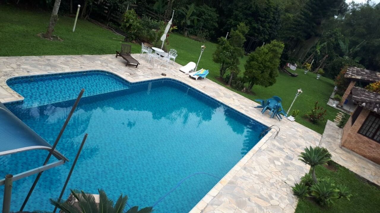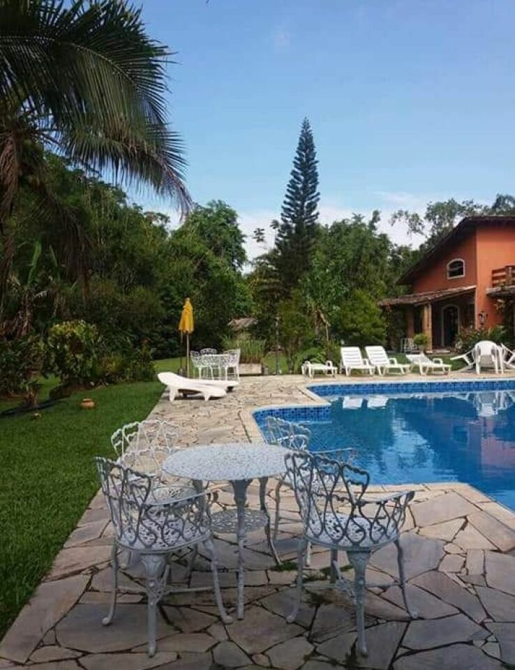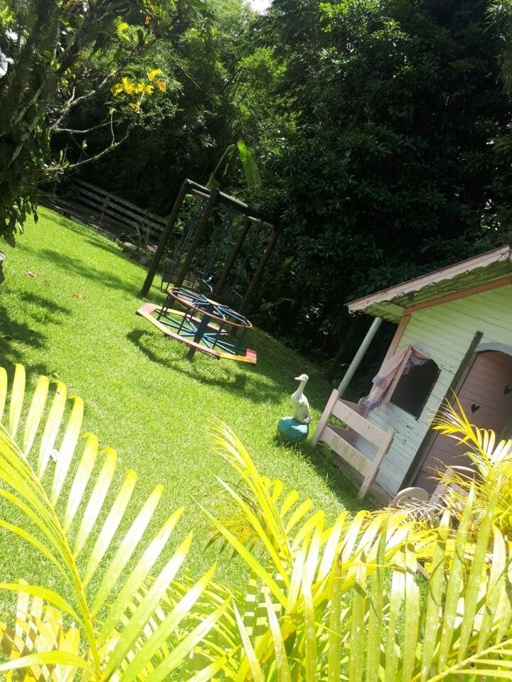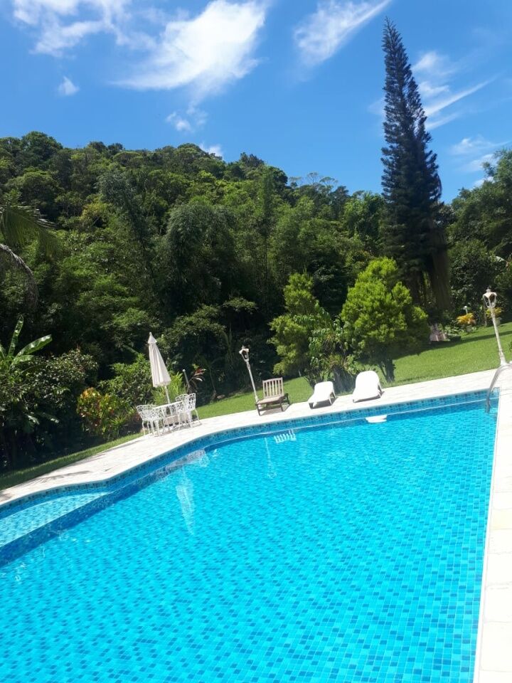 Linda casa ecológica na Mata Atlântica no município de Caraguatatuba localizada a 900 metros da praia ds Massaguaçu com 1.341m2 de área total e 674m2 de AC com 10 suítes que acomodam 44 pessoas, mesanino com 2 salas, varandas, 3 salas no 1° piso, lavabo, cozinha, área de serviço e ampla área de lazer com ampla área de churrasqueira, lindo jardim com rio, piscina grande e playground.