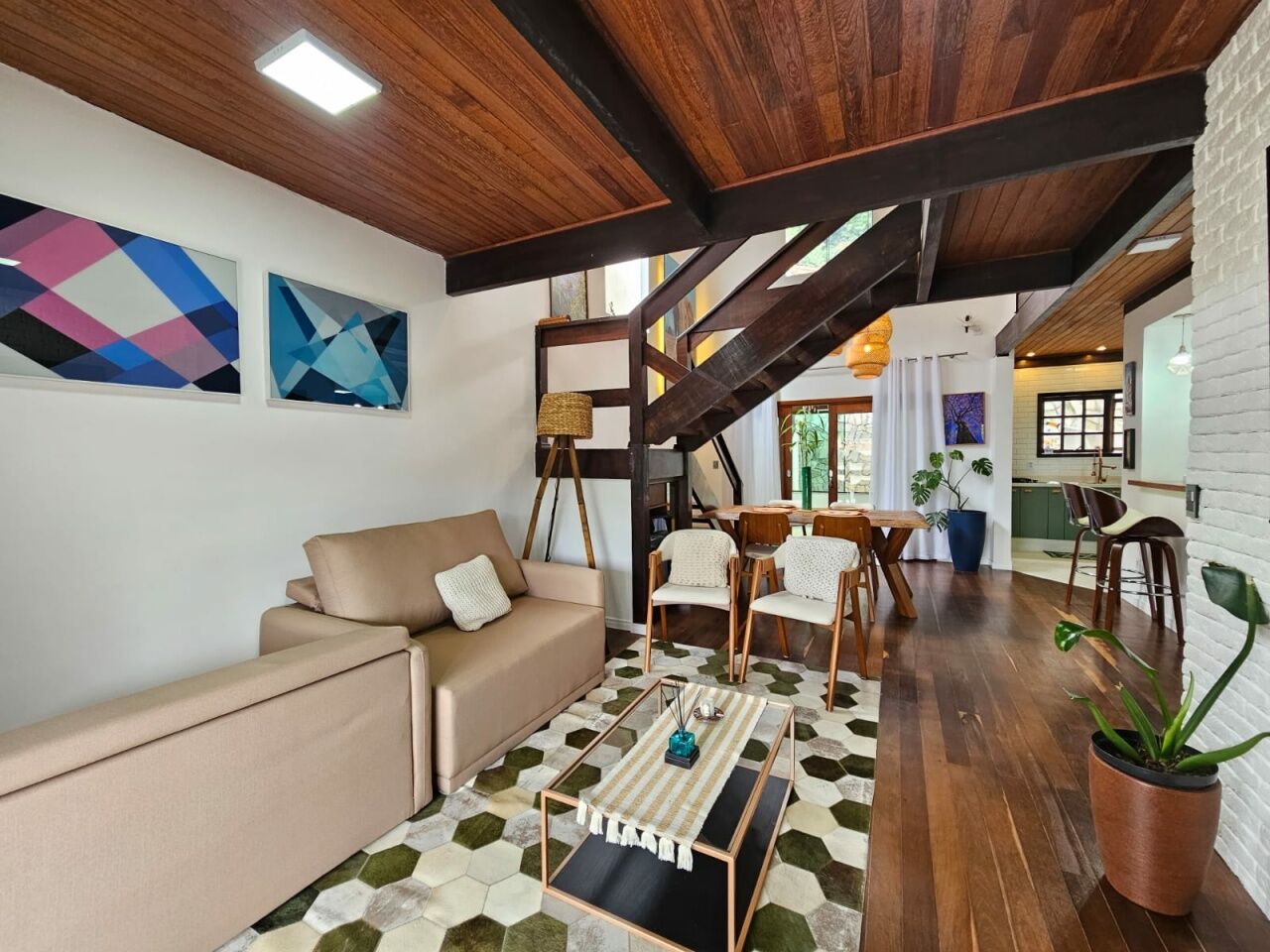 Linda casa assombradada com terreno de 300m2 e AC de 214m2 sendo 3 dormitórios (uma suíte com closet), sala ampla 2 ambientes, cozinha aberta, lavanderia, área gourmet com piscina, varanda ampla e vaga para até 4 veículos sendo 2 cobertos.